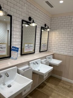 そんな危機を救ってくれたトイレを評価するのは何とも言えない気分ですがしていこうと思います!トイレが設置されている商業施設自体が立地も良いこともあってか、昔からある建物ではありますが施設のアップデートが定期的にあるようでトイレも新しくきれいでした。 なのですが、個室の床にトイレットペーパーが落ちていたり、鏡の前にごみがあったりしたため少し残念でした。 これは間違いなく利用する側の責任ですが、自分の見たままのトイレを評価したいのでそういった内容も考慮させてください。 機能性に関してはトイレも新しいことからウォシュレットも完備、手すり付きの便器や赤ちゃんのおむつ替え?のための折り畳み式のボードが個室にもありすごいなと思いました。個室も四つあり安心です! 私が訪れたのは朝方だったため日中の人の混雑度は予想になってしまいますが、トイレの場所が少し奥まっては居ますがやはり商業施設にあるトイレですので混雑しそうではあります。 なのでおすすめはやはり朝の時間帯かなと🙂‍↕️ それでは星をつけたいと思います!