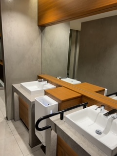 また、洗面台の周りや鏡もとてもきれいでした!木のぬくもりあふれるテイストでカバンなど持っているものも置くスペースもありました。僕の場合は置くスペースがあっても、万が一汚れていたら嫌なので置くことはありませんが🙂↔️ ともあれきれいなトイレでした!