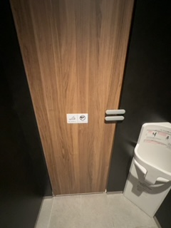 トイレ内も黒とグレーを基調とした落ち着いた雰囲気で、個室の木材風のドアがぬくもりを演出してくれています🌳ゴミもなくにおいもなくとてもきれいなトイレでした!